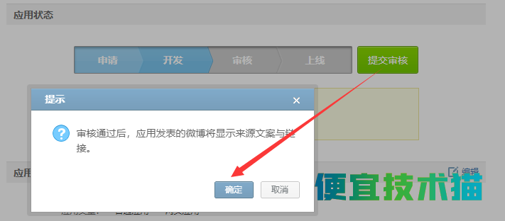 填写完网站应用信息后,至少需要上传三张高300宽450的照片,自己编辑。然后点击下面的保存提交,查看效果。如果没有问题,点击提交审核按钮,在弹出的对话框中点击确认。